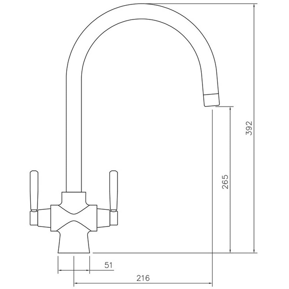DIMENSIONS Height 392mm Tap Hole Diameter 35mm Spout Reach 216mm Spout Height 265mm PRODUCT FEATURES Style Traditional Colour Chrome Finish Polished Material Brass Tap Holes 1 Spout Style Swivel spout for single and multiple bowl...