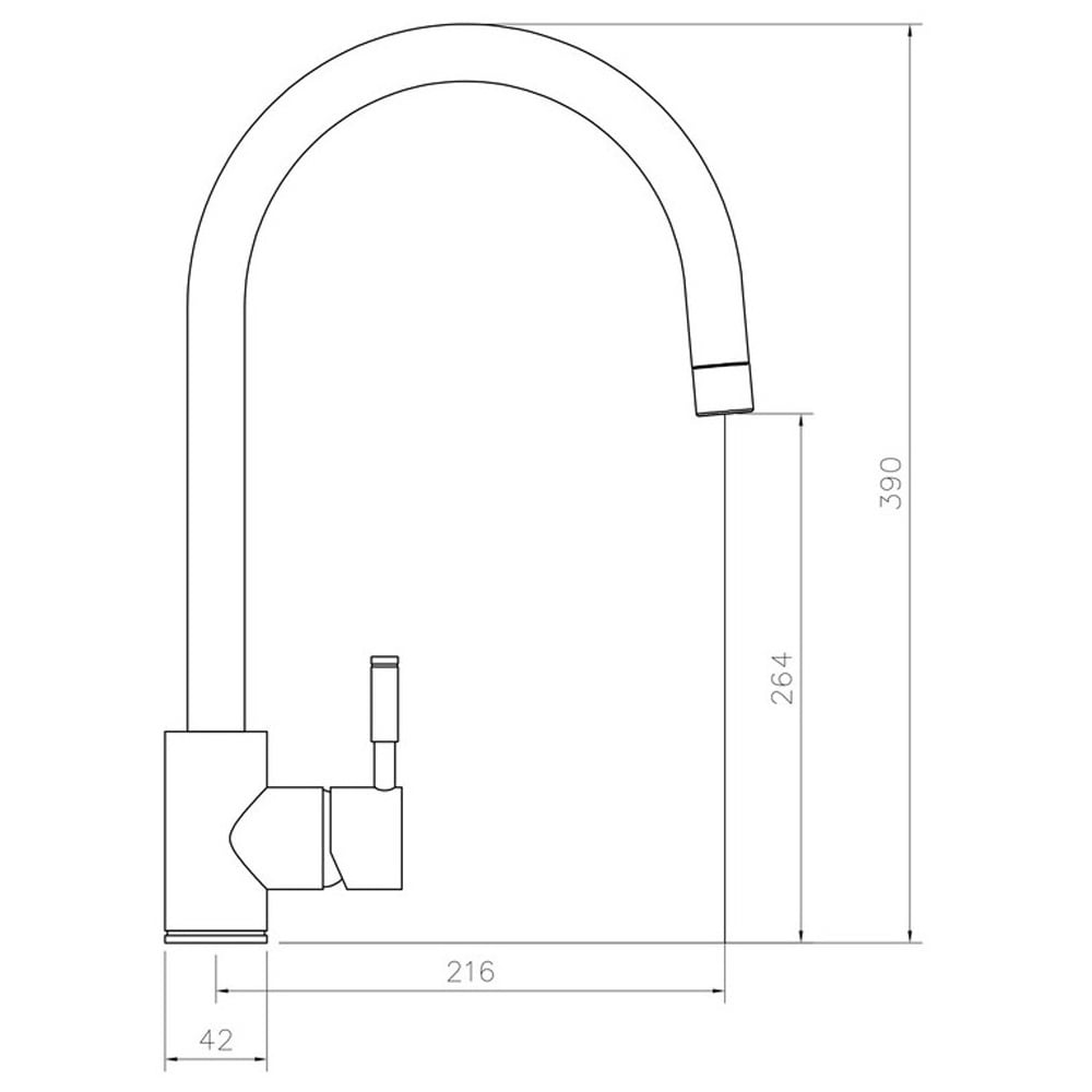 DIMENSIONS Height 390mm Tap Hole Diameter 35mm Spout Reach 216mm Spout Height 264mm PRODUCT FEATURES Style Contemporary Material Brass Tap Holes 1 Spout Style Swivel spout designed for single and multiple bowl sinks Spout Outlet...