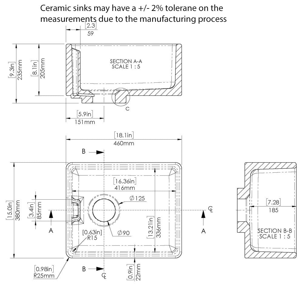 DIMENSIONS All dimensions are in mm, with a tolerance (variance) of ±2% on all measurements Minimum Cabinet Size 500mm Our ceramic kitchen sinks are meticulously hand finished using traditional crafting methods that have been perfected...