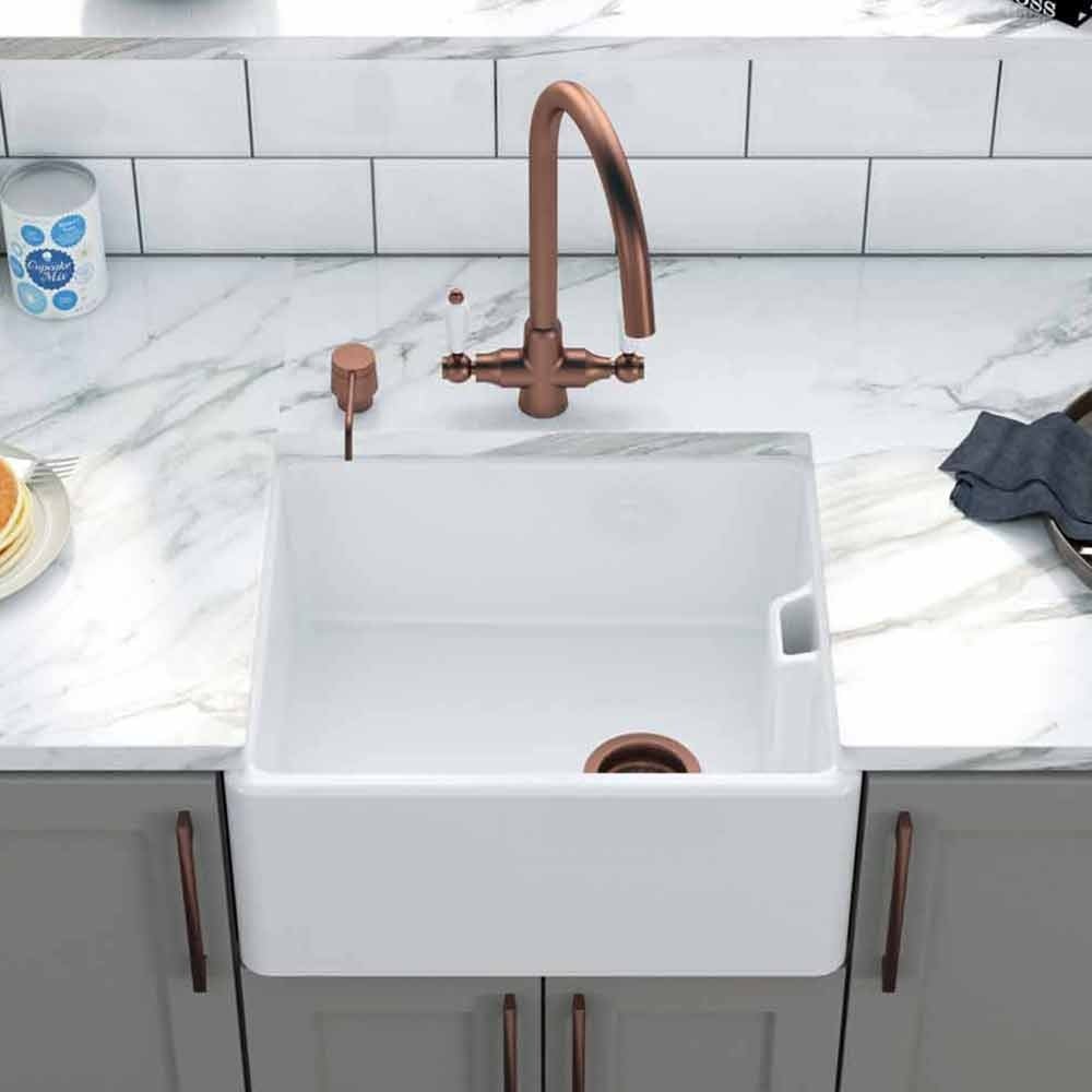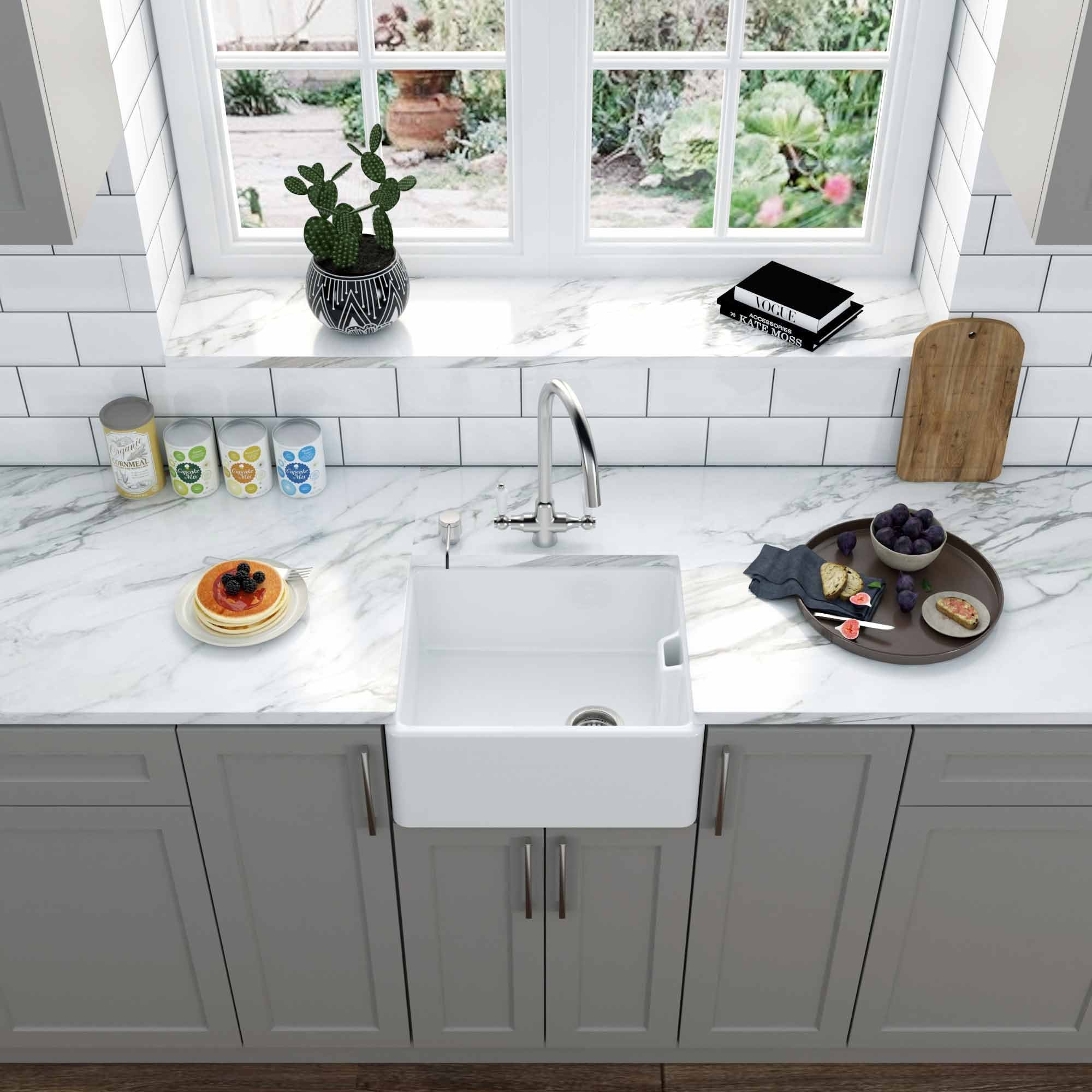 Astini Belfast 600 1.0 Bowl White Ceramic Butler Kitchen Sink with Waste