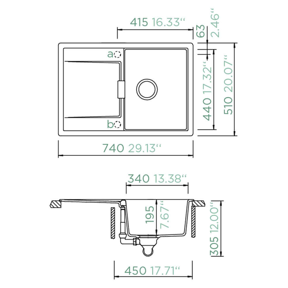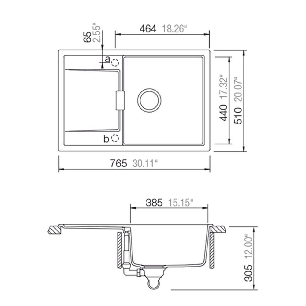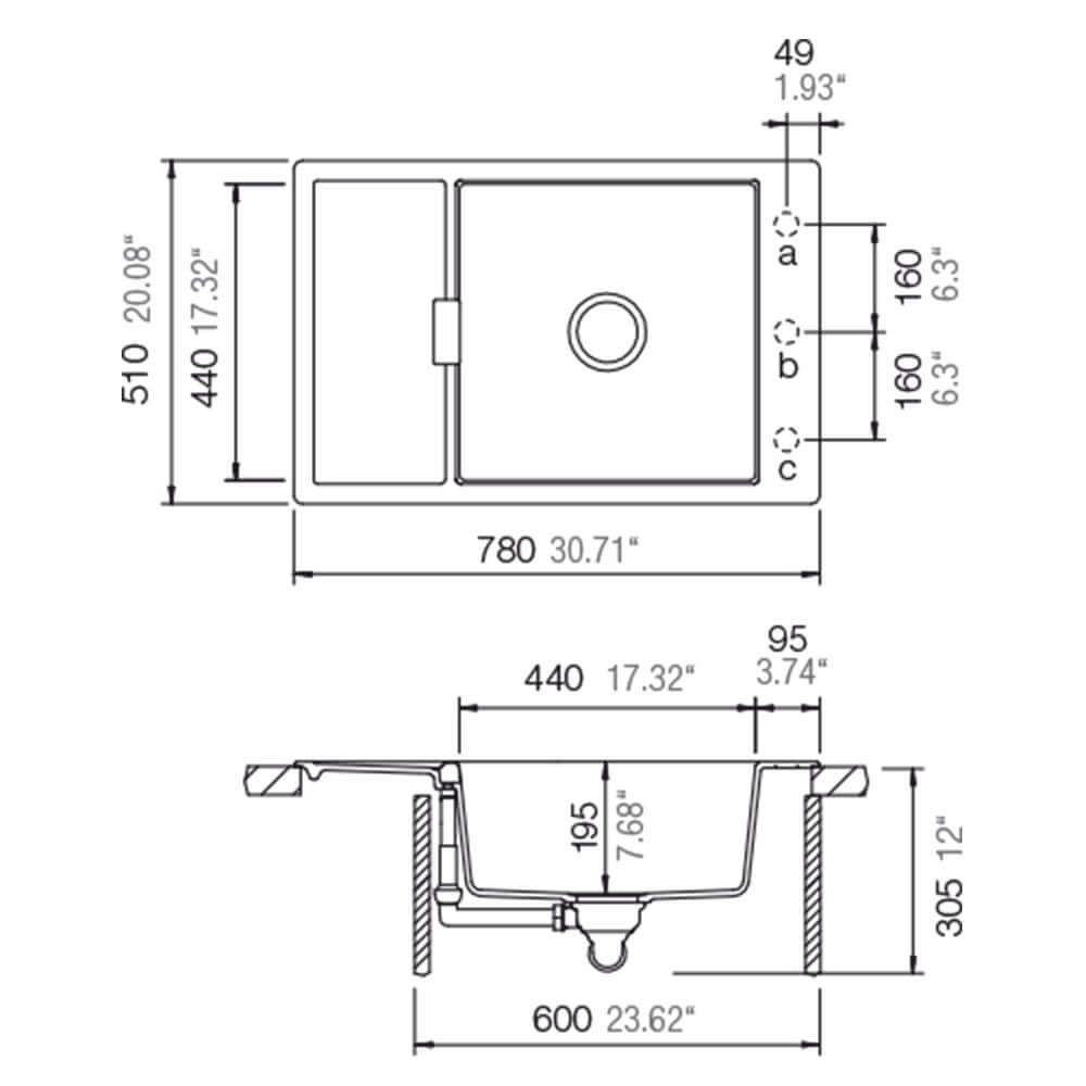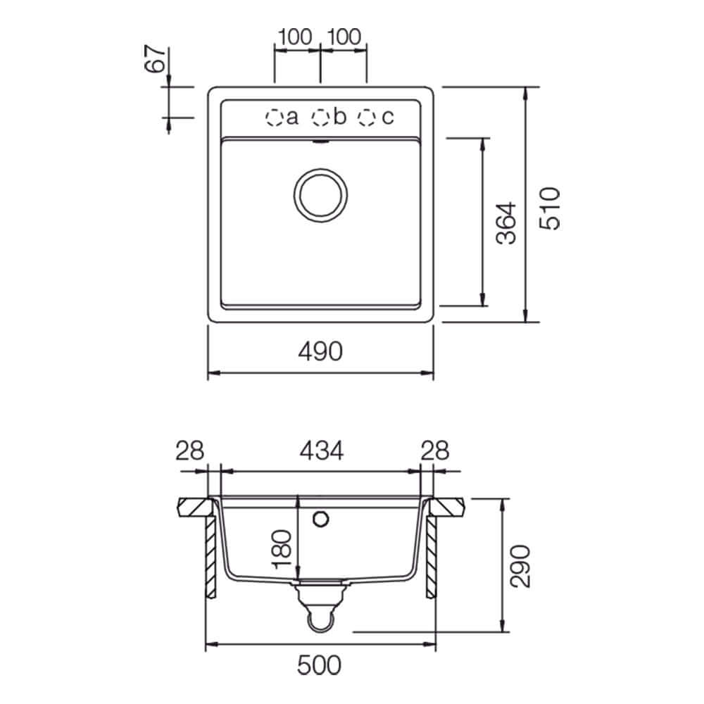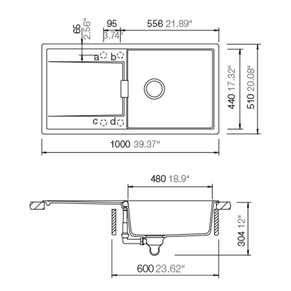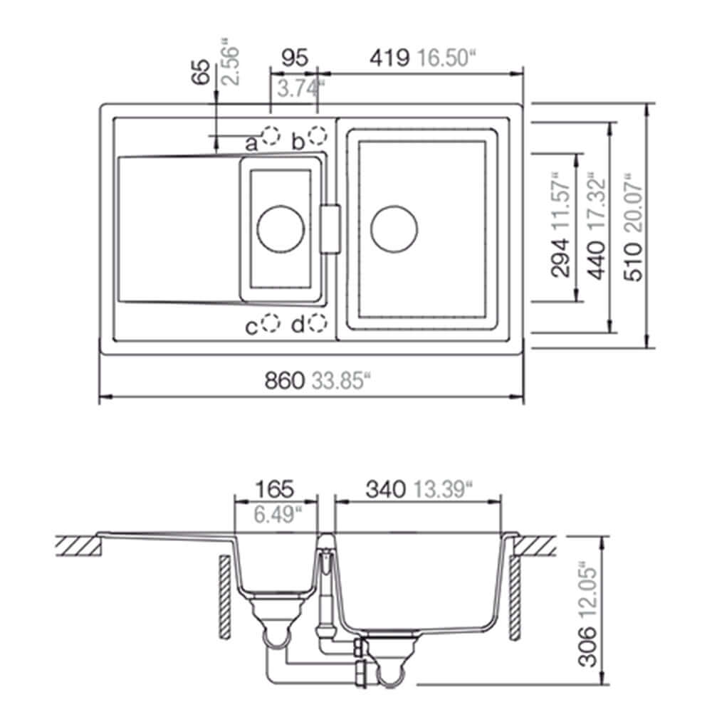 DIMENSIONS Length (Left to Right) 860mm Width (Front to Back) 500mm Depth (Top to Bottom) 293mm Minimum Cabinet Size 600mm Cutout Dimensions Inset: 980 x 480mm R10 or for undermount installation: 986 x 486mm R10...
