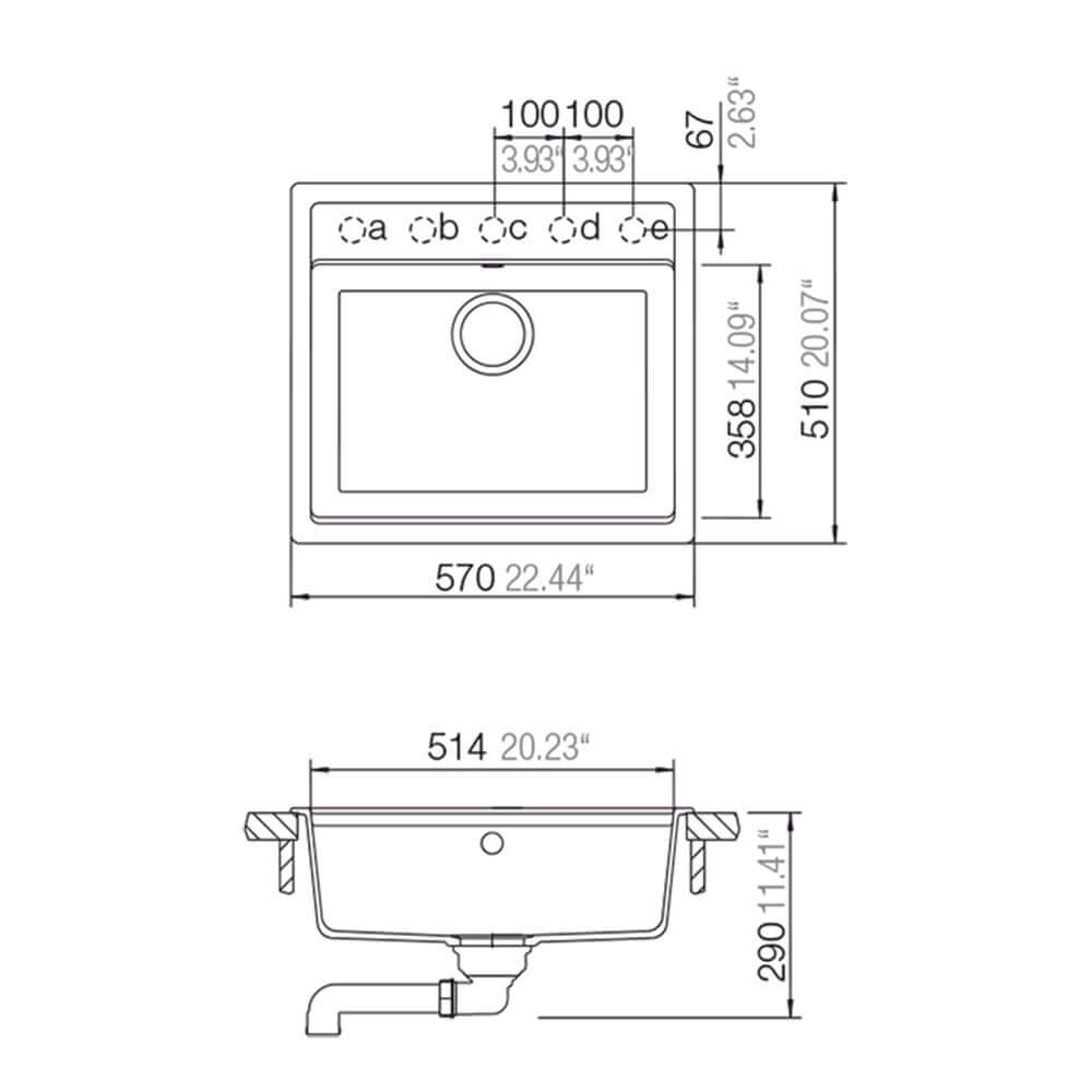 Dimensions Length (Left to Right): 595mm Width (Front to Back): 475mm Depth (Top to Bottom): 220mm Main Bowl Size (Length x Width x Depth): 555mm x 435mm x 205mm Bathroom and kitchen ceramic products are...