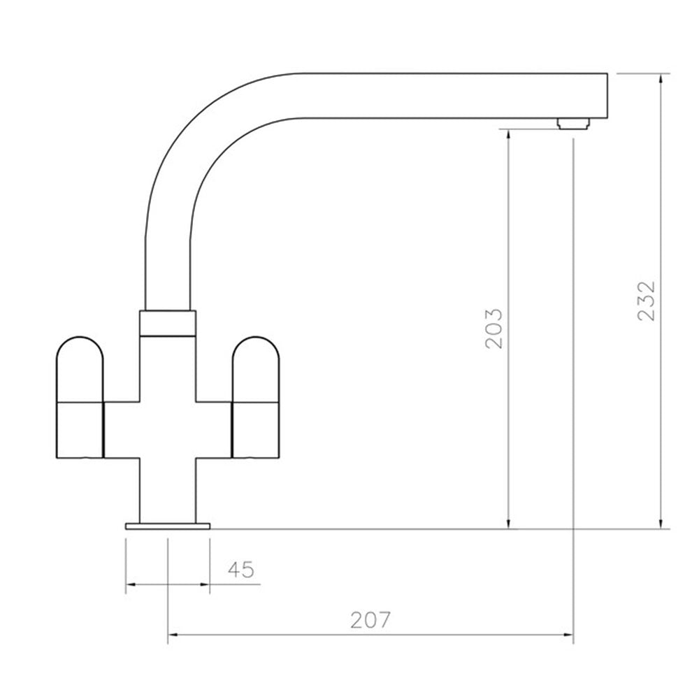 Dimensions Height: 232mm Spout Height: 203mm Product Features Tap Hole Diameter: 35mm Spout Reach: 207mm Style: Contemporary Colour: Chrome Finish: Polished Material: Brass Tap Holes: 1 Spout Style: Swivel spout for single and multiple bowl...