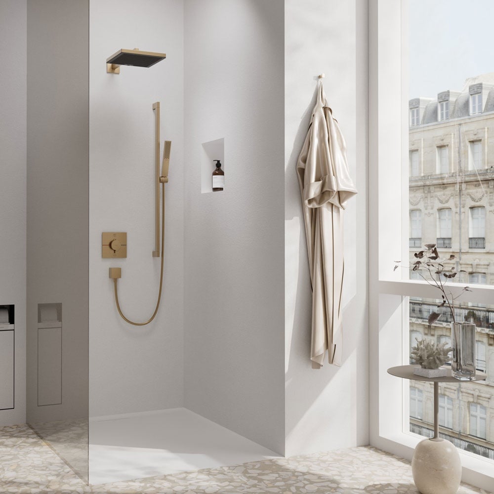 Astini Brushed Brass Round Concealed Thermostatic 2 Handle 2 Way Shower Valve Kit
