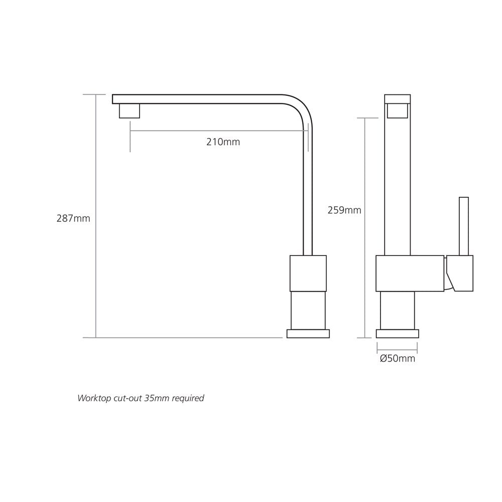 • Worktop Cut Out 35mm required