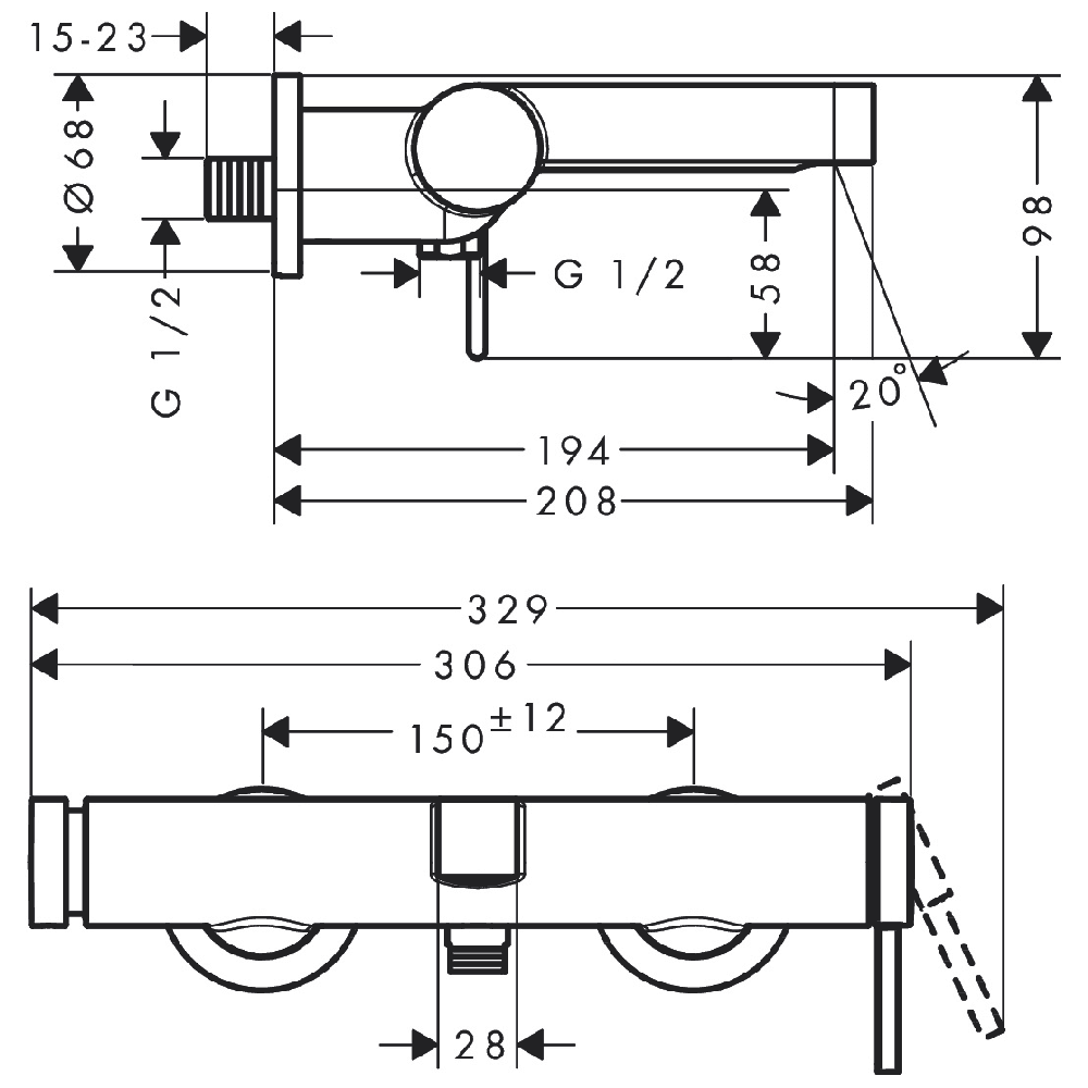 • Centre distance: 150 mm ± 12 mm