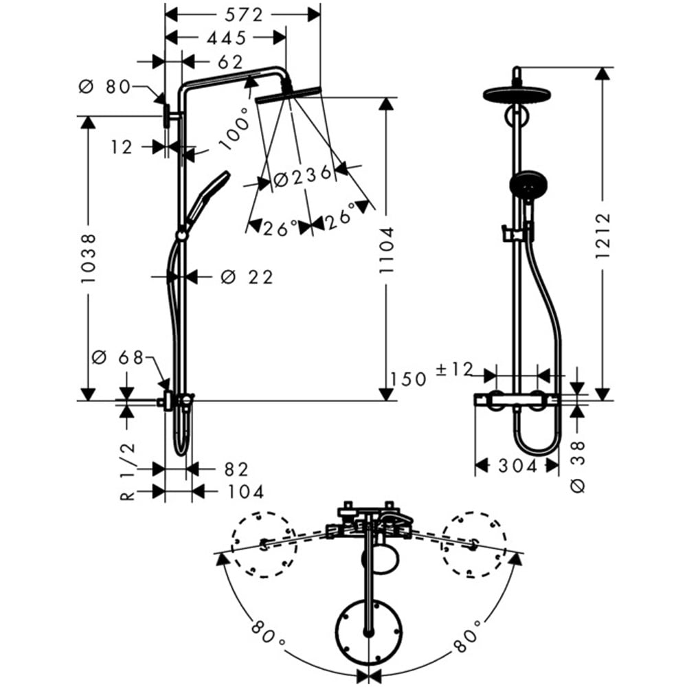 Hansgrohe Raindance S Chrome Showerpipe 240 1jet With Thermostatic Shower Mixer