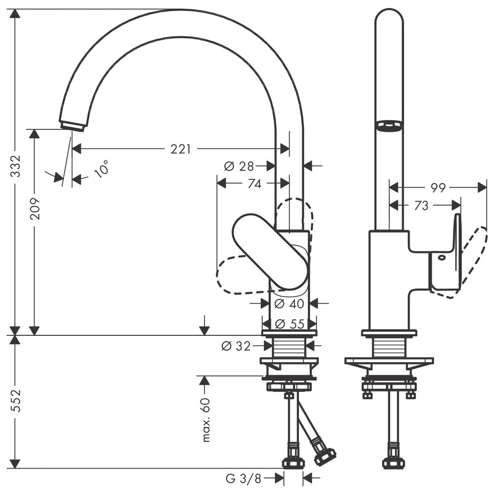 Spout Reach (mm)209 mm