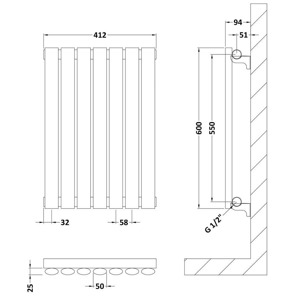 Hudson Reed Revive 600x412mm Anthracite 300W Single Panel Radiator HLA37