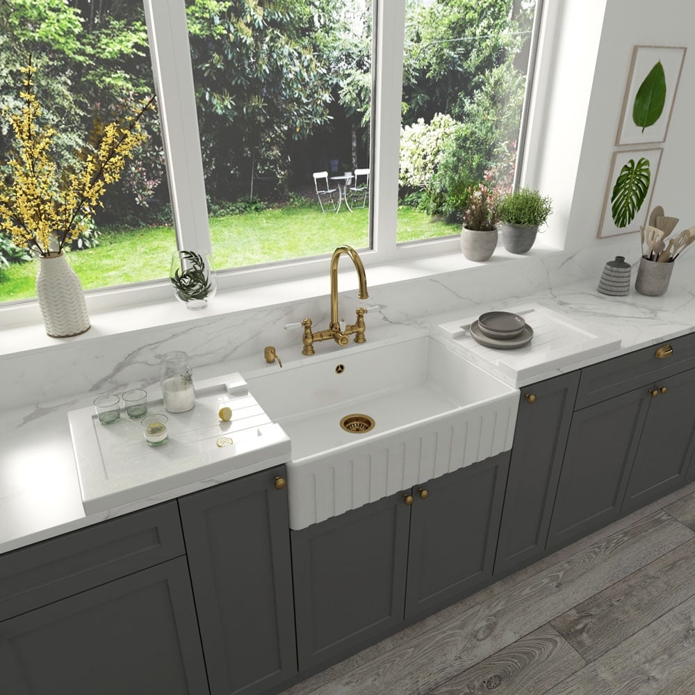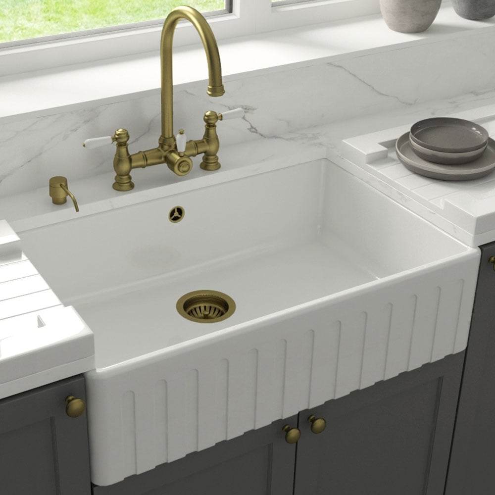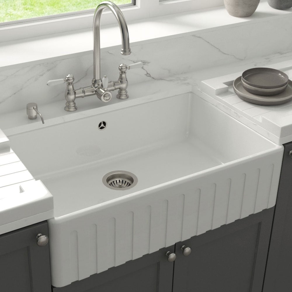 LSC Fluted Butler 795 1.0 Bowl White Ceramic Kitchen Sink with Waste & Overflow