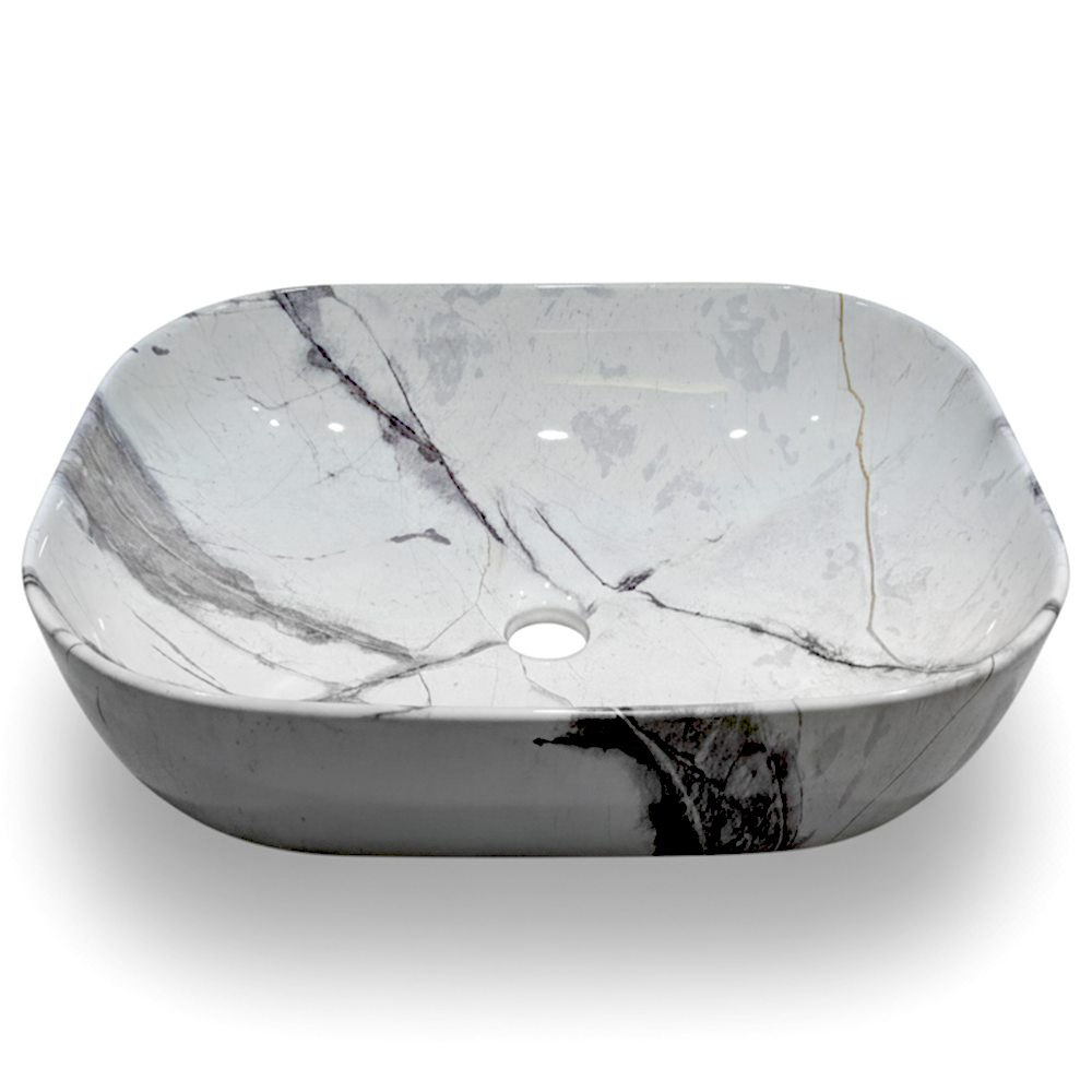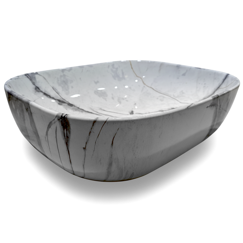 Marble Luxe White Calacatta Marble Effect Ceramic Counter Top Basin
