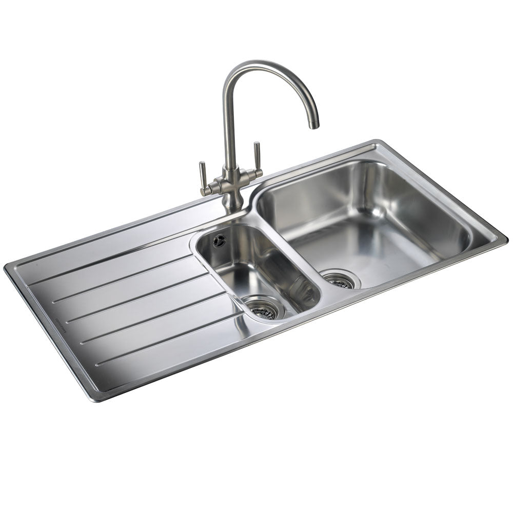 Rangemaster Oakland 1.5 Bowl Brushed Stainless Steel Kitchen Sink & Waste LHD OL9852L/