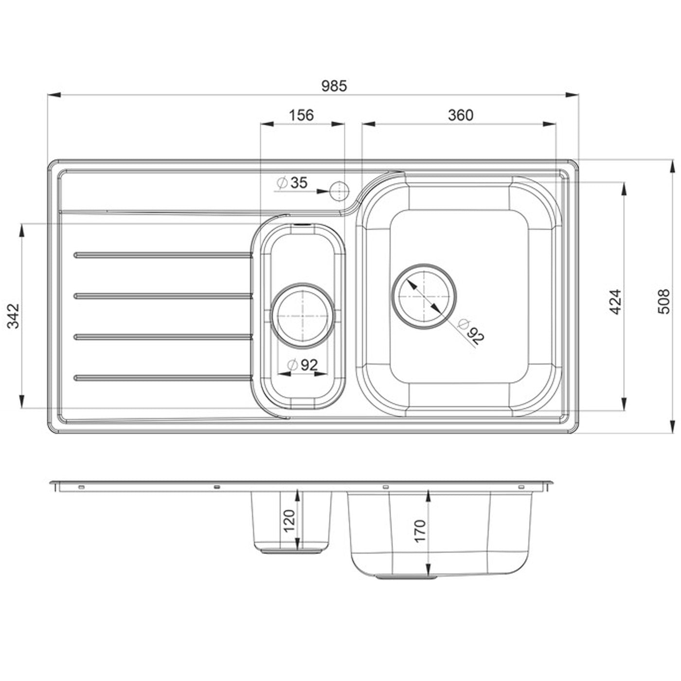• Second Bowl Size (Length x Width x Depth): 156 x 342 x 120mm