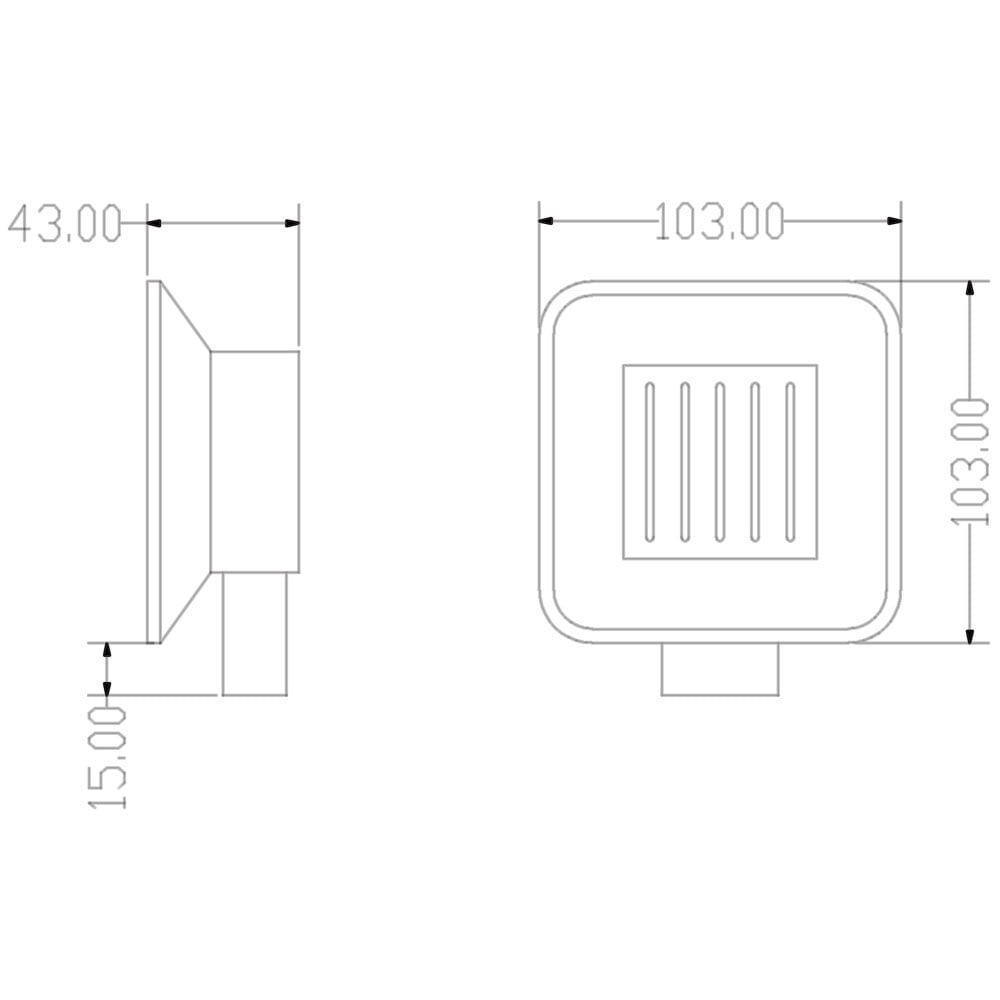 • Dimensions: Compact size with length and width approximately 103mm, and height around 43mm