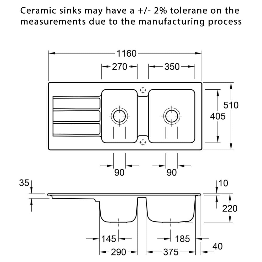 Bathroom and kitchen ceramic products are hand finished using traditional crafting methods that have been used for over 175 years, and due to this process, the sizes may vary +/-2% from those shown and may not be exactly uniform. Please ensure you carefully calculate the maximum and minimum variance in sizes for this product, ensuring you have adequate installation room to avoid disappointment.