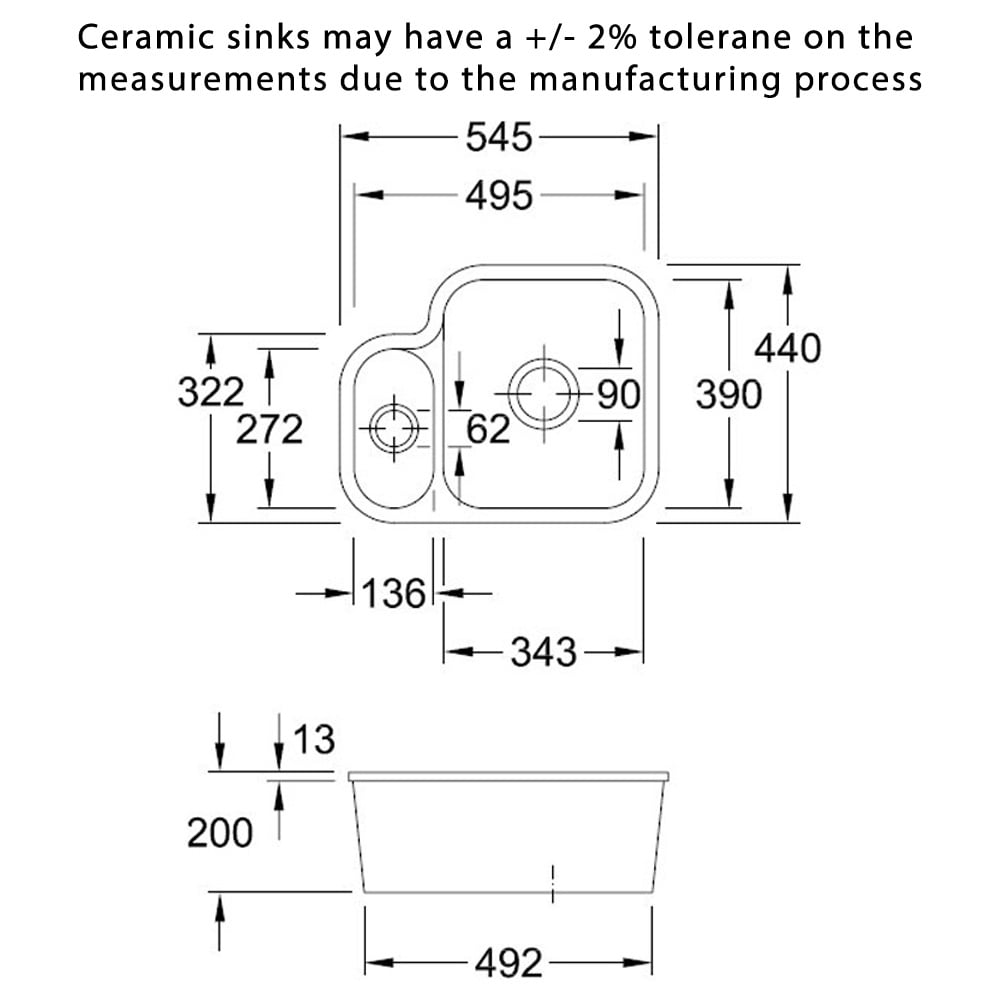 • Ceramic kitchen sink