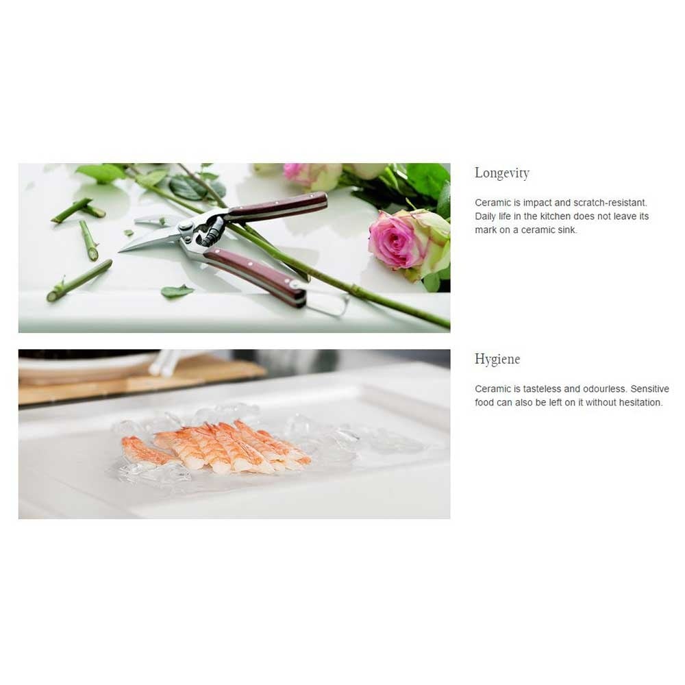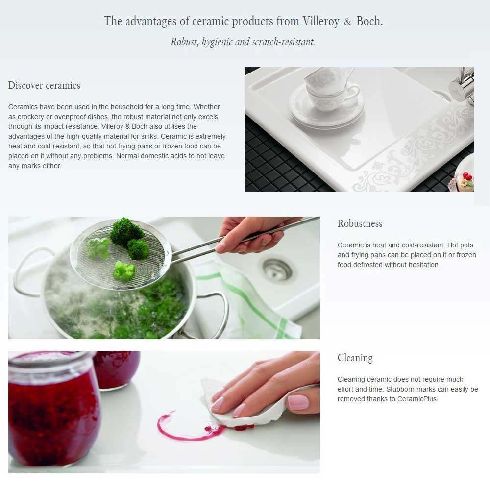 Cramer Email-Star, Blanco Cera Care, Blanco PuraPlus and Blanco Antikalk suit ceramic sinks. They are formulated for daily cleaning, help maintain gloss and reduce limescale.